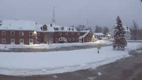Our webcam is mounted at our headquarters in Dublin, New Hampshire, on the side of the Thomas Building, named for the founder of The Old Farmer's Almanac, Robert B. Thomas (editor from 1792 to 1846). Our accounting, circulation, and information services departments are located in this building. The small photo at the right shows the webcam mounted on the side of the building. The webcam image is updated once a minute.